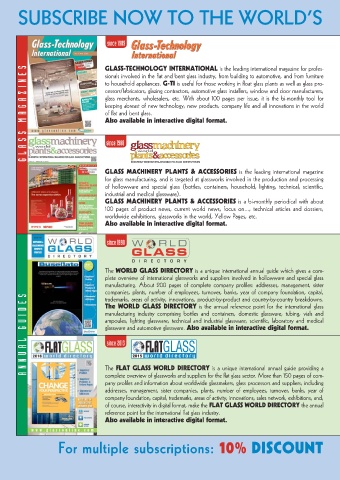 complete overview of glassworks and suppliers for the flat glass sector. More than 150 pages of com-