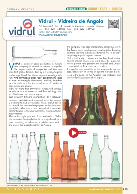 partnership, Vidrul has shown unprecedented growth, lored to the needs of the Angolan food industry, and