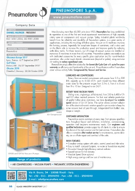 Glasstec 2018 warranty on efficiency and functionality of the air end. Three divisions within Pneumofore