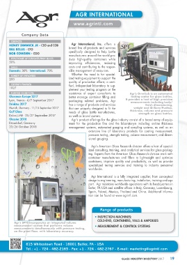 Glasstec 2018 Agr’s product offerings for the glass industry consist of a broad array of equip-