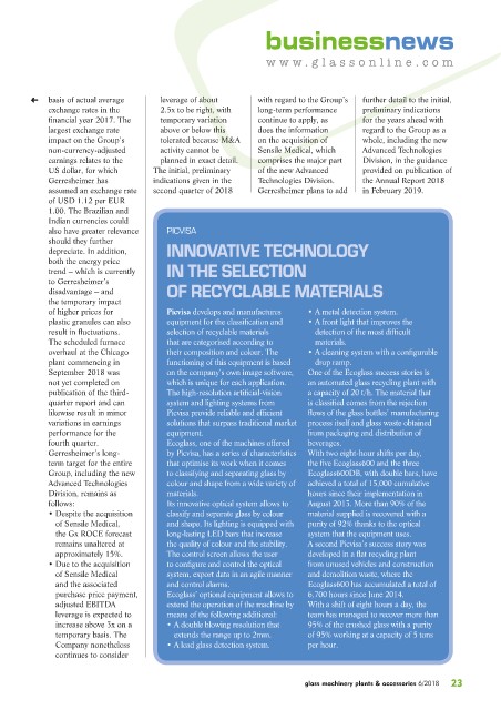 Gerresheimer has indications given in the Technologies Division. the Annual Report 2018