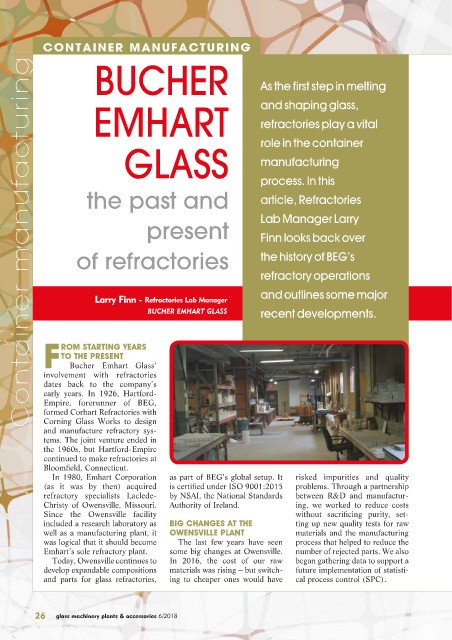 BUCHER EMHART GLASS recent developments.