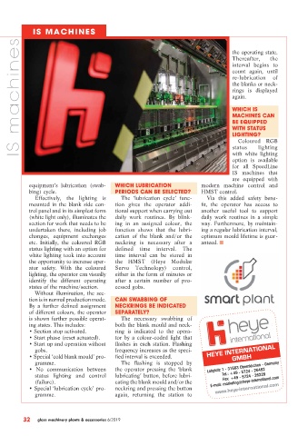 • Special ‘lubrication cycle’ pro- neckring and pressing the button www.heye-international.com