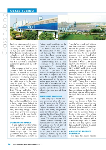 duction hub for SCHOTT phar- growth of the sector in the state.” that there are tremendous oppor-
