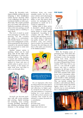 translucent finishes as well as gra- services for packaging that is