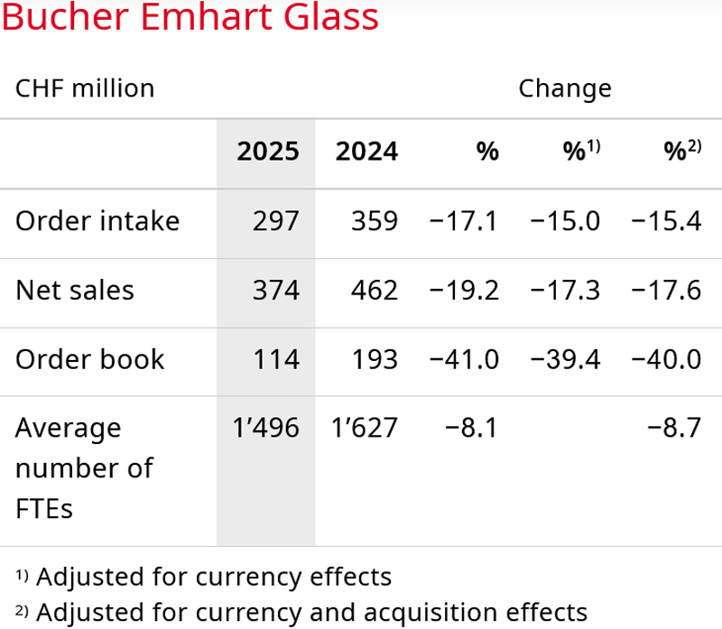 Business performance of Bucher Emhart Glass