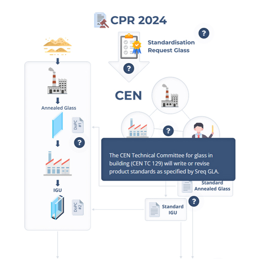 This provides an overview of the CPR 2024 procedure to place building glass products on the market, the upcoming standardisation work and the requirements regarding sustainability and digitalisation.