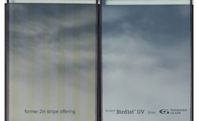 The product has been approved by the American Bird Conservancy (ABC) in combination with a broad range of Guardian SunGuard™ low-E coatings, including SNX 70+, SNX 60+, SNX 62/27, SNX 51/23, SN 68 and Neutral 78/65. Bird1st UV is available on Guardian UltraClear™ low-iron glass and Guardian Clear glass substrates—offering architects and facade designers an extensive range of energy performance, light transmission, and aesthetic options. In addition, the laminated glass can also provide further benefits, including enhanced security performance and improved sound control, contributing to a multipurpose glazing solution.