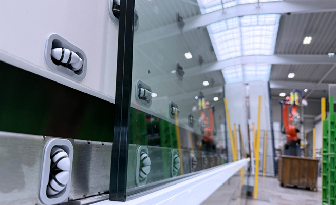 Laminated safety glass (LSG) consists of multiple glass panes bonded by a tear-resistant interlayer, typically PVB. It is widely used where safety and stability are essential, such as in architecture or public spaces. Processing LSG requires high precision, clean edges and stable, reliable processes.