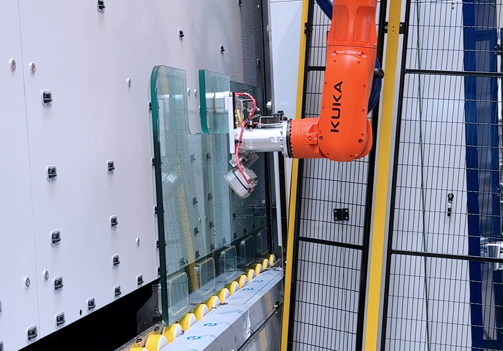 For complex shapes, the proHD and proMDH integrate automated water-jet cutting. As a cold cutting process, water-jet technology avoids thermal or mechanical stress on both glass and interlayer. The result is clean, precise cuts without the need for rework, even for intricate geometries.