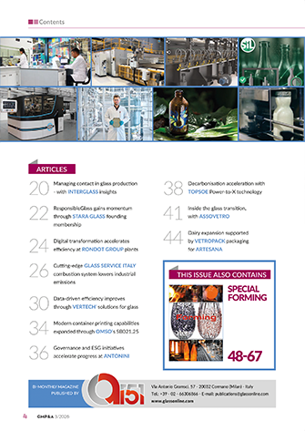 Readership of this leading international magazine for glass manufacturing is targeted to glassworks involved in the production and processing of both holloware and special glass (containers, tableware, lighting, technical, scientific, industrial and pharmaceutical glassware).