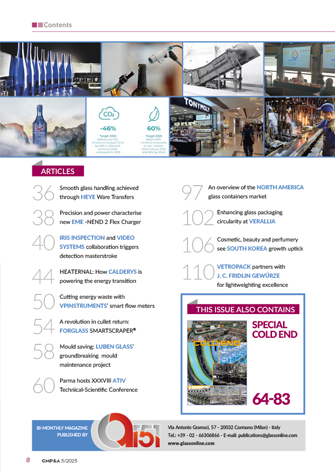 Readership of this leading international magazine for glass manufacturing is targeted to glassworks involved in the production and processing of both holloware and special glass (containers, tableware, lighting, technical, scientific, industrial and pharmaceutical glassware).
