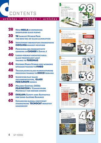 The leading international magazine for professionals involved in the flat and bent glass industry, from building to automotive - furniture to household appliances. G-TI is essential reading for all who work within float glass plants as well as glass processors/fabricators, glazing contractors, automotive glass installers, window and door manufacturers, glass merchants and wholesalers, etc.