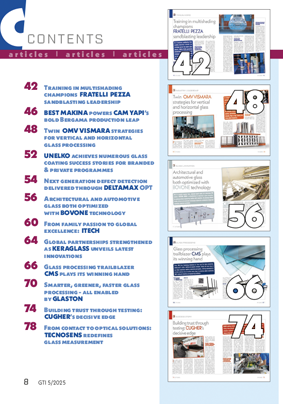 The leading international magazine for professionals involved in the flat and bent glass industry, from building to automotive - furniture to household appliances. G-TI is essential reading for all who work within float glass plants as well as glass processors/fabricators, glazing contractors, automotive glass installers, window and door manufacturers, glass merchants and wholesalers, etc.