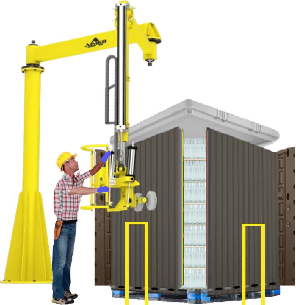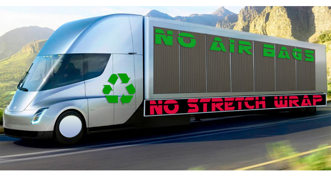 The standard method of shipping bulk bottles and jars post production is to stretch wrap the pallet before it is shipped to the customer. While working at a major winery in central California, Costello noticed how much plastic was being thrown away after each production run. He also noticed that when a trailer full of glass came into the winery to be unloaded, the glass stacks required up to eleven air bags to hold them in place.