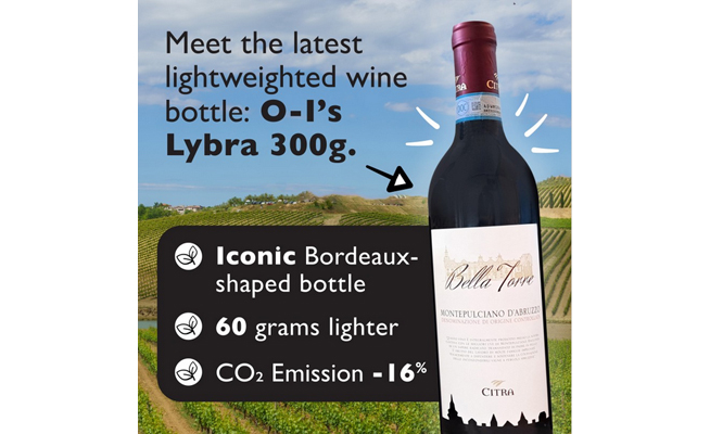 In Italy, O-I has introduced the Lybra 300g: a lightweight wine bottle that preserves the classic Bordeaux shape while reducing weight by 60 grams.