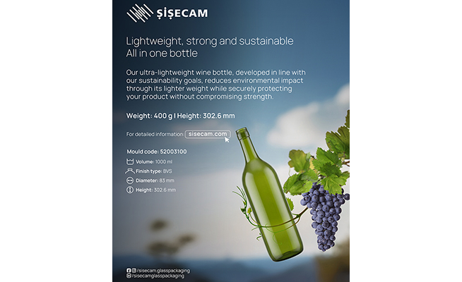 Following the successful introduction of 110-gram ultra-lightweight mineral water bottles, Şişecam has now expanded its light-weighting efforts to include 300 and 400 ram wine bottles, offering the sector an environmentally responsible and aesthetically refined packaging alternative.