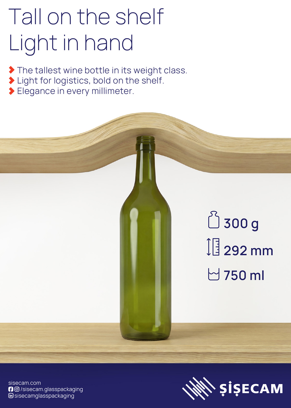 With its 300 and 400 gram ultra-lightweight glass bottle portfolio, Şişecam delivers a cost-efficient, sustainable, and visually premium packaging solution for beverage producers, retailers, and wholesalers. The lightweight glass construction preserves a high-end quality perception while enabling brands to align their packaging choices with their sustainability objectives.