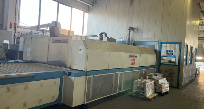 A Tornati Forni flat glass tempering furnace (year 2005) is currently available in Italy.